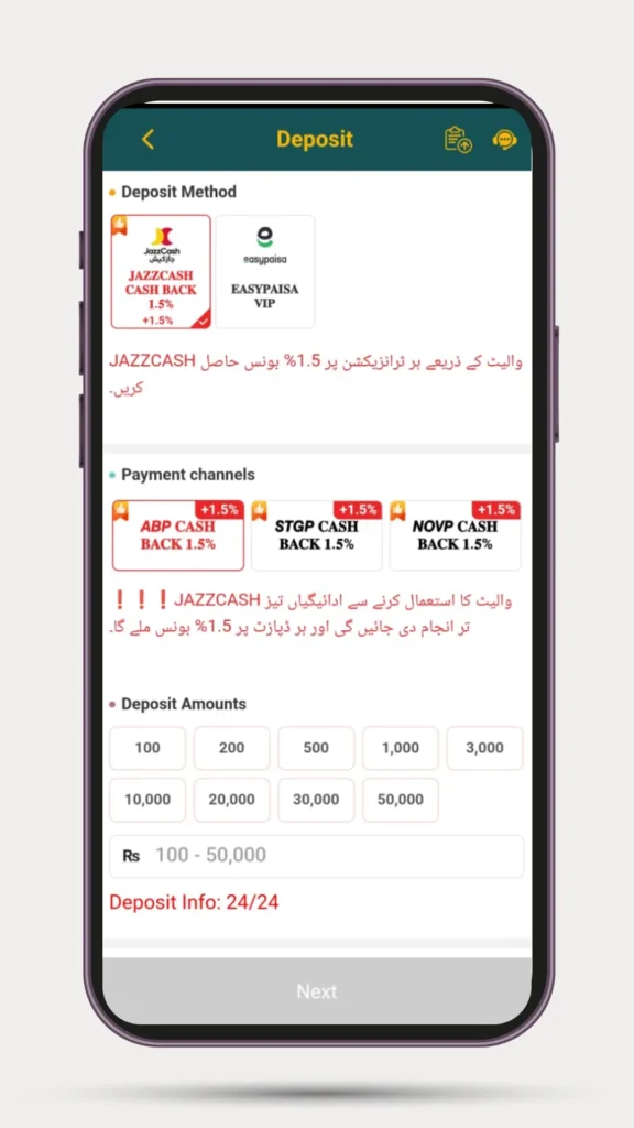 Adding money to your account is quick and simple. The app supports common payment methods, making it easy for users in Pakistan to deposit funds without hassle.