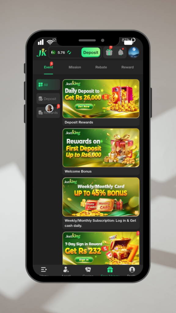 JeetKing Pakistan is designed to be simple and enjoyable. The app interface is clean and easy to understand. Even users who are new to online gaming can start playing without confusion. The games are quick, rewards are instant, and daily bonuses keep users active.